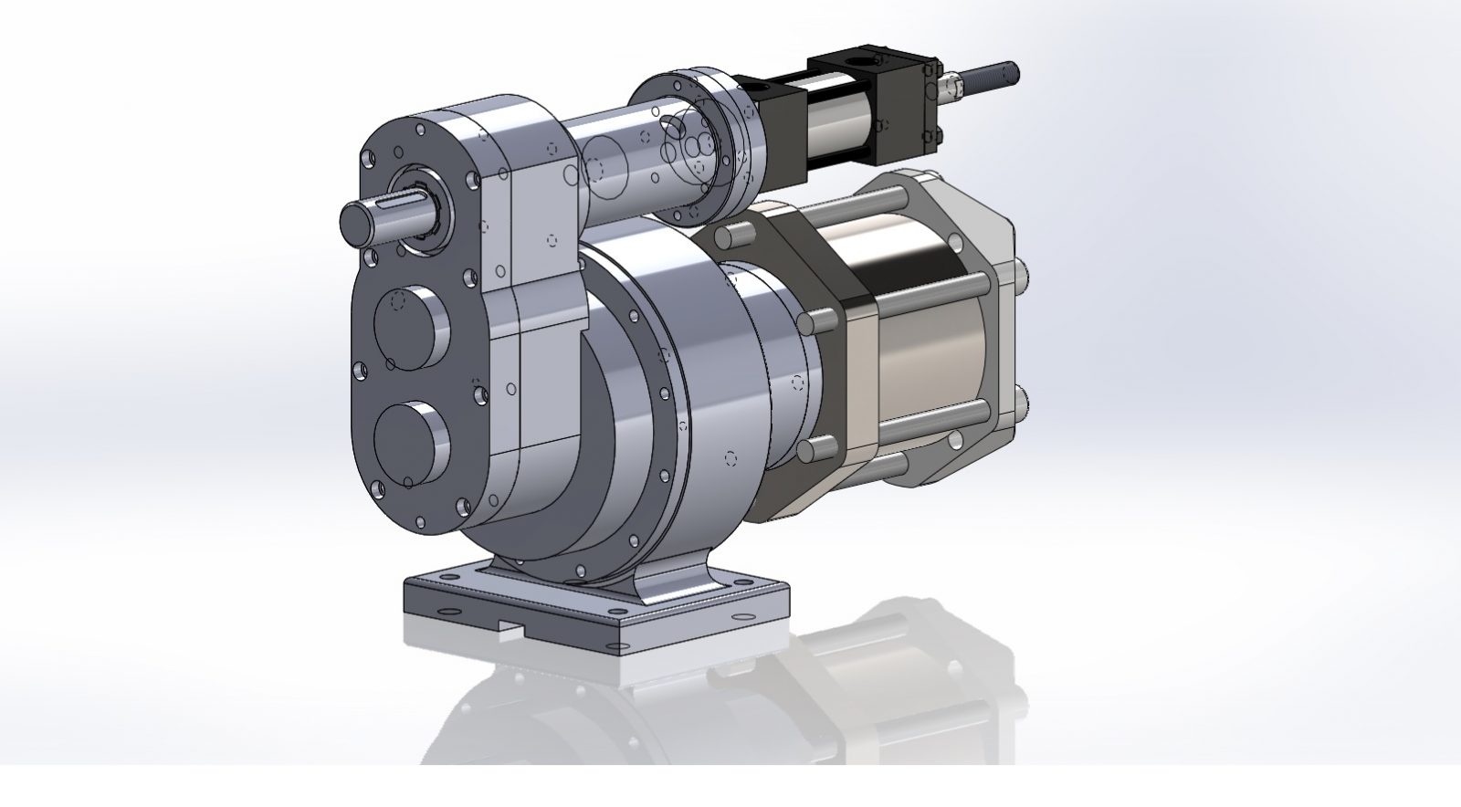 Here's an alt tag for the image: 3D model of a hydraulic pump.